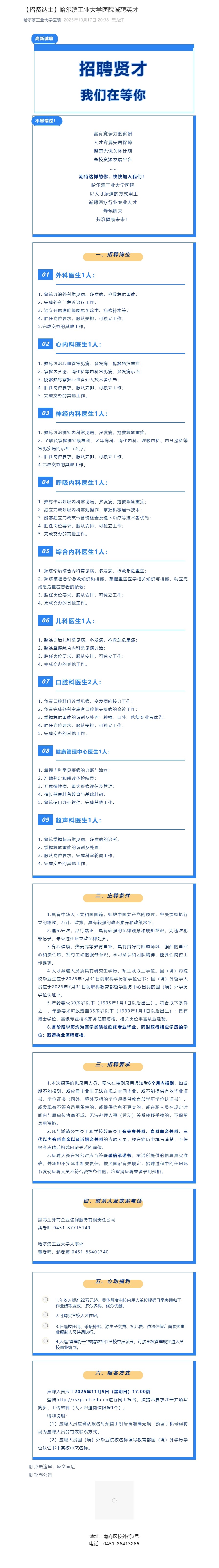 哈尔滨工业大学医院诚聘英才